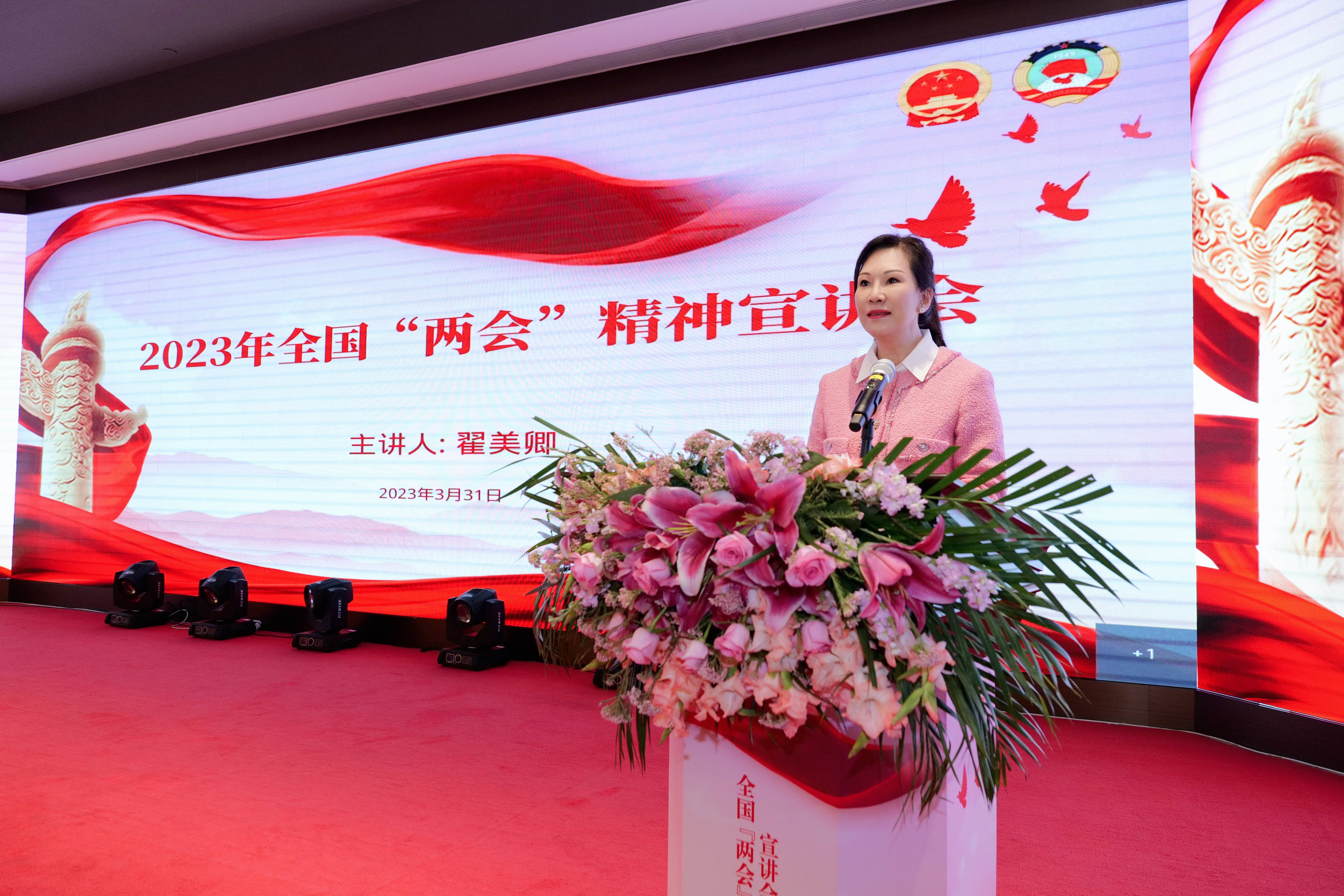 會(huì)上,全國(guó)政協(xié)委員、廣東省女企業(yè)家協(xié)會(huì)會(huì)長(zhǎng)、廣州市納稅人協(xié)會(huì)會(huì)長(zhǎng)、香江集團(tuán)總裁翟美卿,全國(guó)人大代表、廣東省女企業(yè)家協(xié)會(huì)副會(huì)長(zhǎng)、國(guó)眾聯(lián)集團(tuán)董事長(zhǎng)黃西勤作為主講人,為參會(huì)的企業(yè)家及企業(yè)黨員團(tuán)員分享參加2023年全國(guó)兩會(huì)的感受體會(huì)和學(xué)習(xí)心得。