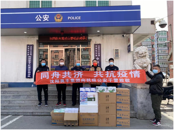 沈陽奧豐集團(tuán)向沈陽市公安局蘇家屯分局中興派出所捐贈N95口罩500個、醫(yī)用外科口罩2000個、酒精100瓶、免洗洗手液50瓶、醫(yī)用膠皮手套500副、牛奶20箱等抗疫物資。