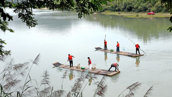 浙江省臺州市仙居縣步路鄉(xiāng)黨員志愿者與河長一起在永安溪巡河護水(2024年6月4日攝)。新華社發(fā)(王華斌攝)