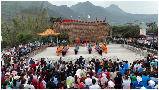 “敬牛節(jié)”是反映壯族傳統(tǒng)農(nóng)耕稻作文化的傳統(tǒng)節(jié)日之一,也是南丹縣極具影響力的非遺項目,被列入自治區(qū)級非物質(zhì)文化遺產(chǎn)名錄。通過多年來持續(xù)不斷的節(jié)慶活動,帶動了當(dāng)?shù)匚穆卯a(chǎn)業(yè)深度融合發(fā)展,村容村貌發(fā)生了根本性改觀,推動全村基礎(chǔ)設(shè)施建設(shè)一年上一個臺階。