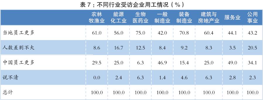 其七,一般制造業(yè)和服務(wù)業(yè)企業(yè)的員工本土化還有待發(fā)展。(見表7)