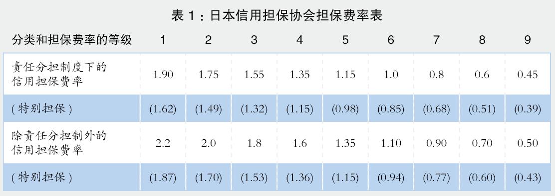 日本信用保證協(xié)會共有9種不同的擔(dān)保費率(見表1),企業(yè)投保的費率是由信用風(fēng)險數(shù)據(jù)庫(CRD)確定的。CRD建于2001年,該組織收集中小企業(yè)和小型企業(yè)的管理數(shù)據(jù)(財務(wù)/非財務(wù)數(shù)據(jù)和默認信息),目的是通過數(shù)據(jù)判斷中小企業(yè)和小型企業(yè)的管理狀況,衡量與中小企業(yè)融資相關(guān)的信用風(fēng)險,使中小企業(yè)融資更加順暢和簡化。2009年6月,該組織更名為“ CRD協(xié)會”。