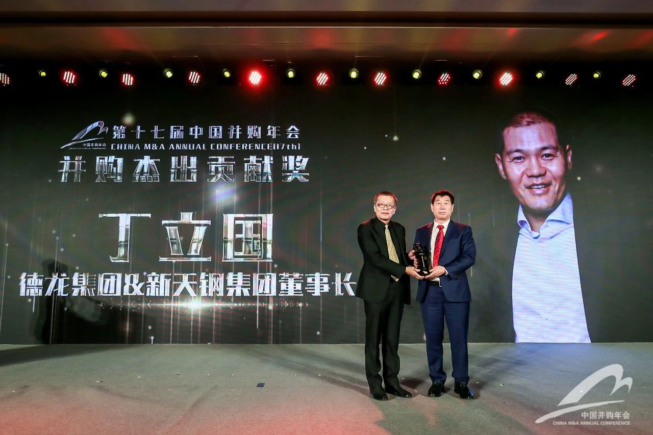 2019年,德龍集團參與天津渤海鋼鐵混改,一舉促成了建國以來最大的并購案,也是民營企業(yè)并購國有企業(yè)的經(jīng)典案例,他曾因此獲得“2019年中國十大并購人物”稱號。全聯(lián)并購公會將2020年度并購杰出貢獻獎授予丁立國先生。