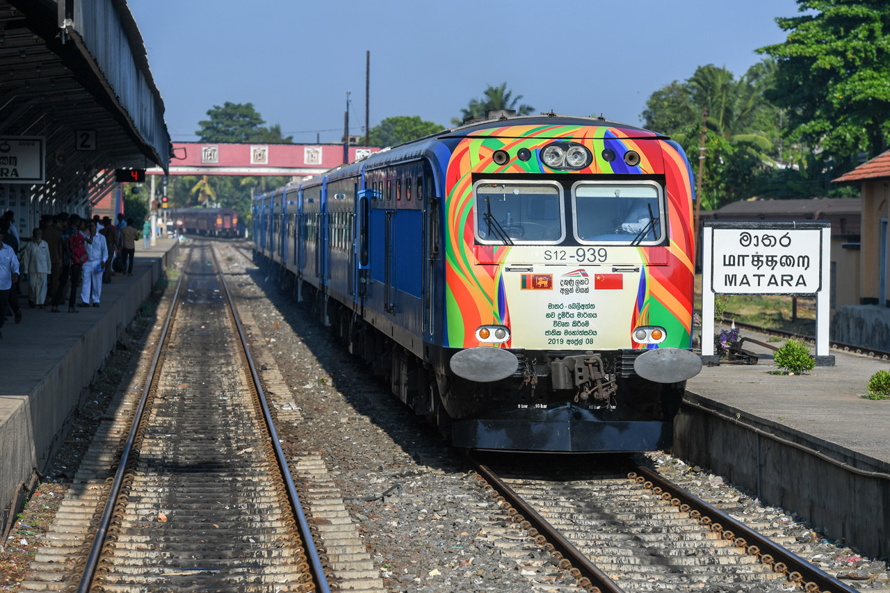 4月8日,列車??吭谒估锾m卡南部馬特勒車站,準(zhǔn)備駛往貝利亞塔。由中國企業(yè)承建的斯里蘭卡南部鐵路延長線一期項目8日正式通車,并在斯南部城市貝利亞塔舉行了通車儀式。 郭磊 攝